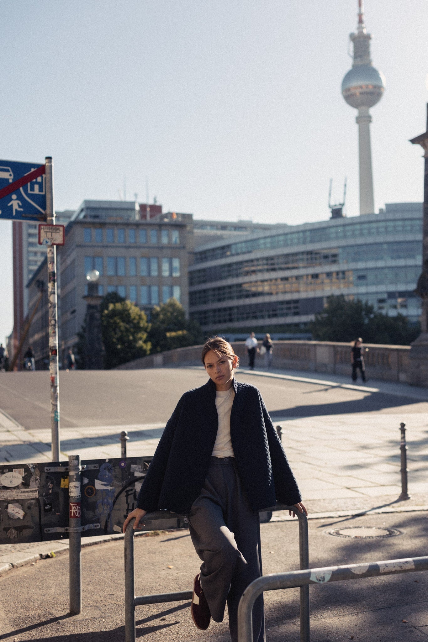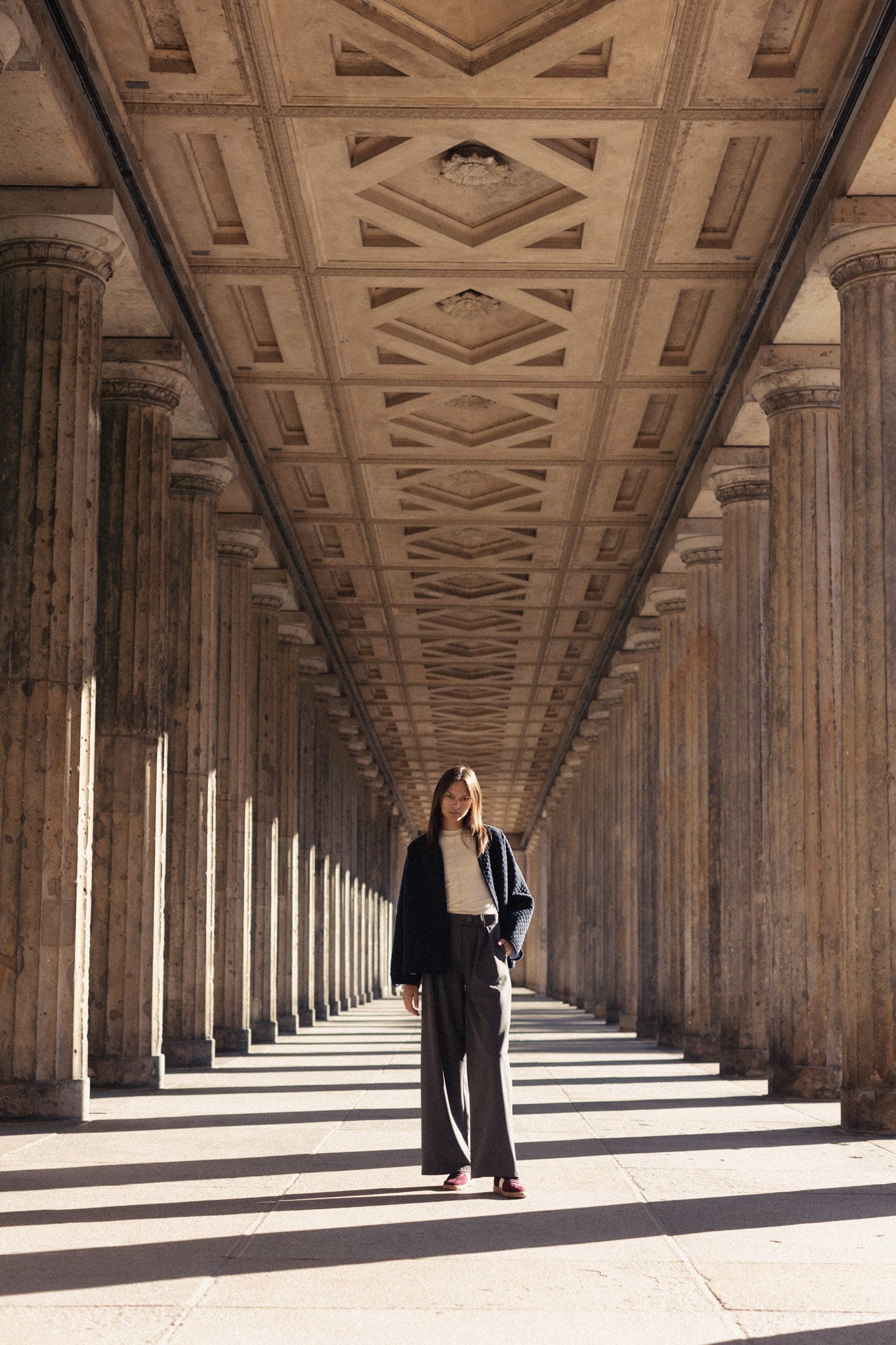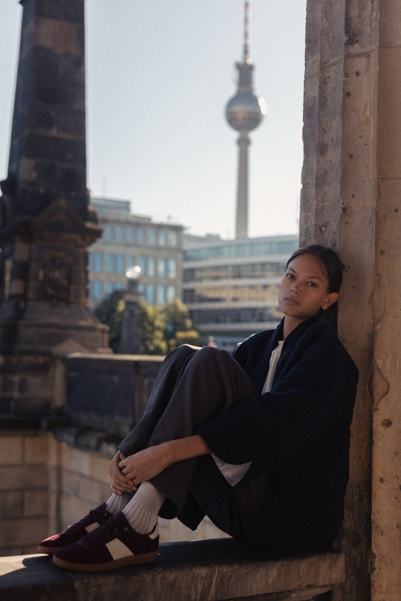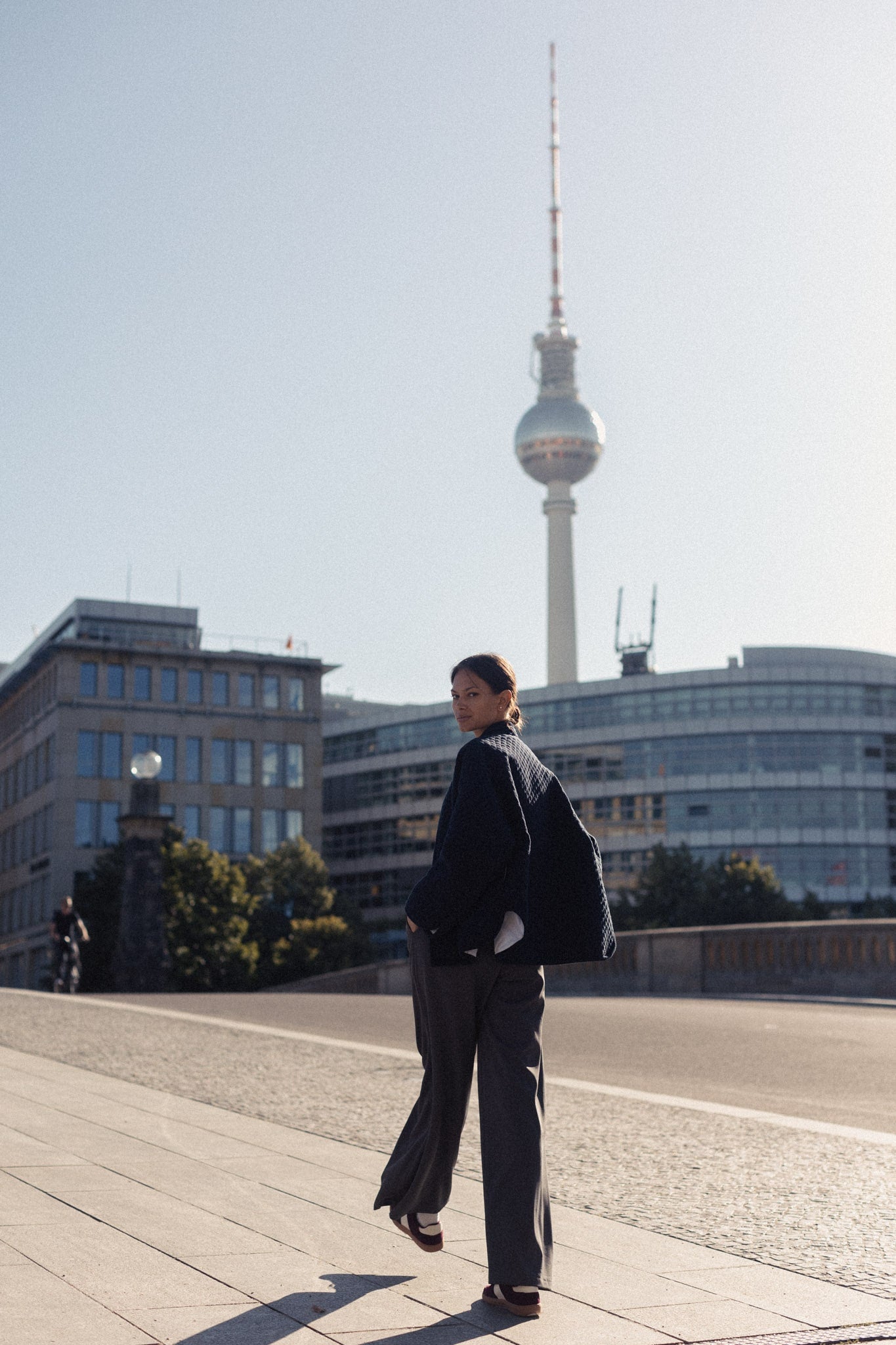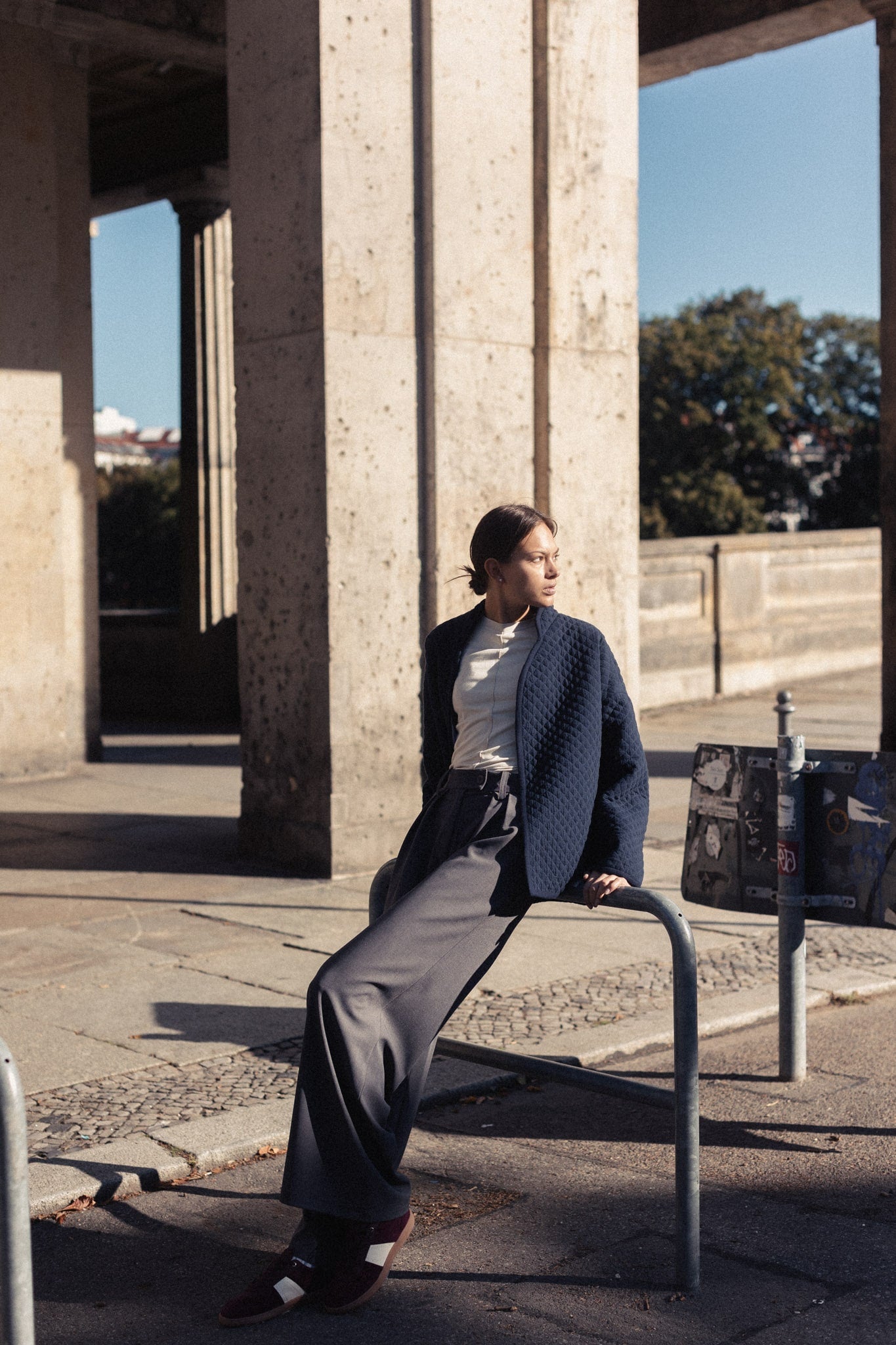 Prešívaná bavlnená bunda RIO bola Vašou minuloročnou láskou. Tento rok som vybrala neutrálnejšie farby a jednou z nich je táto navy blue. Má oversized strih a jej strih definuje výrazný zadný diel s oválnym bočným výstrihom, ktorý sa nesie skrz celej kolekcie. Nájdete ho totiž vo viacerých modeloch, aby sa dali spolu dokonale kombinovať. Je podšitá bielou bavlnenou látkou, má zaujímavo ukončené rukávy s decentým prekrytým výstrihom. Pre zachovanie jej čistej línie bez rušivých elementov na nej nenájdete zapínanie, ale jej pevný materiál Vám zabezpečí, že sa bunda LENA nebude otvárať. A každopádne, viete si pod ňu obliecť jeden z našich vlnených nátelníkov. Dokonale sedí k športovému looku, ale v Berlíne ju mala Lilia oblečenú k nohaviciam z oblekového setu SOREN a vyzerala božsky.