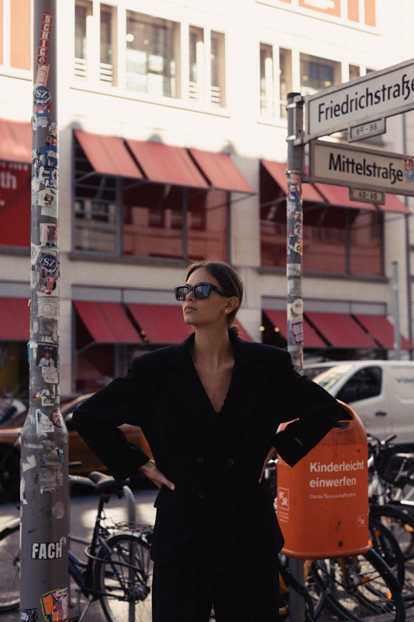 Vlajkovými modelmi tejto kolekcie je trio nohavicových kostýmov, ktoré sa od seba odlišujú strihom saka, ale aj nohavíc. Čo však majú spoločné? Tažko štýlový a nadčasový oversized ležérny strih. Použili sme tri základné farby, ktoré v šatníku každej ženy nesmú chýbať. Jednou z nich je farba čierna. Sako NOX je špecifické svojim zadným dielom, na ktorom nájdete dva vnútorné záhyby prišité gombíkmi, ktoré sú charakteristické pre tento čierny set. Totiž nohavice majú taktiež na spodnej časti gombík, ktorým si ich viete zúžiť a tým ich urobíte efektnejšími napríklad ku vyšším čižmám či lodičkám. Je podšité viskózovou látkou a na rukáve má efektnú etiketu s logom Miss Kolorova. Chcete dosiahnuť look boss girl? Here you are!