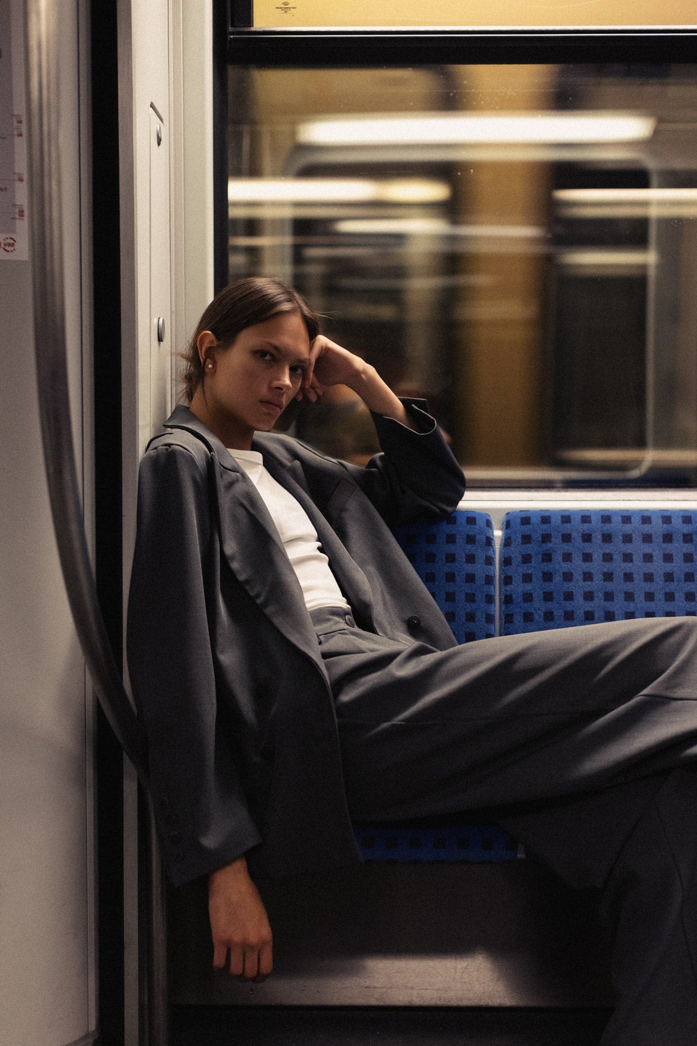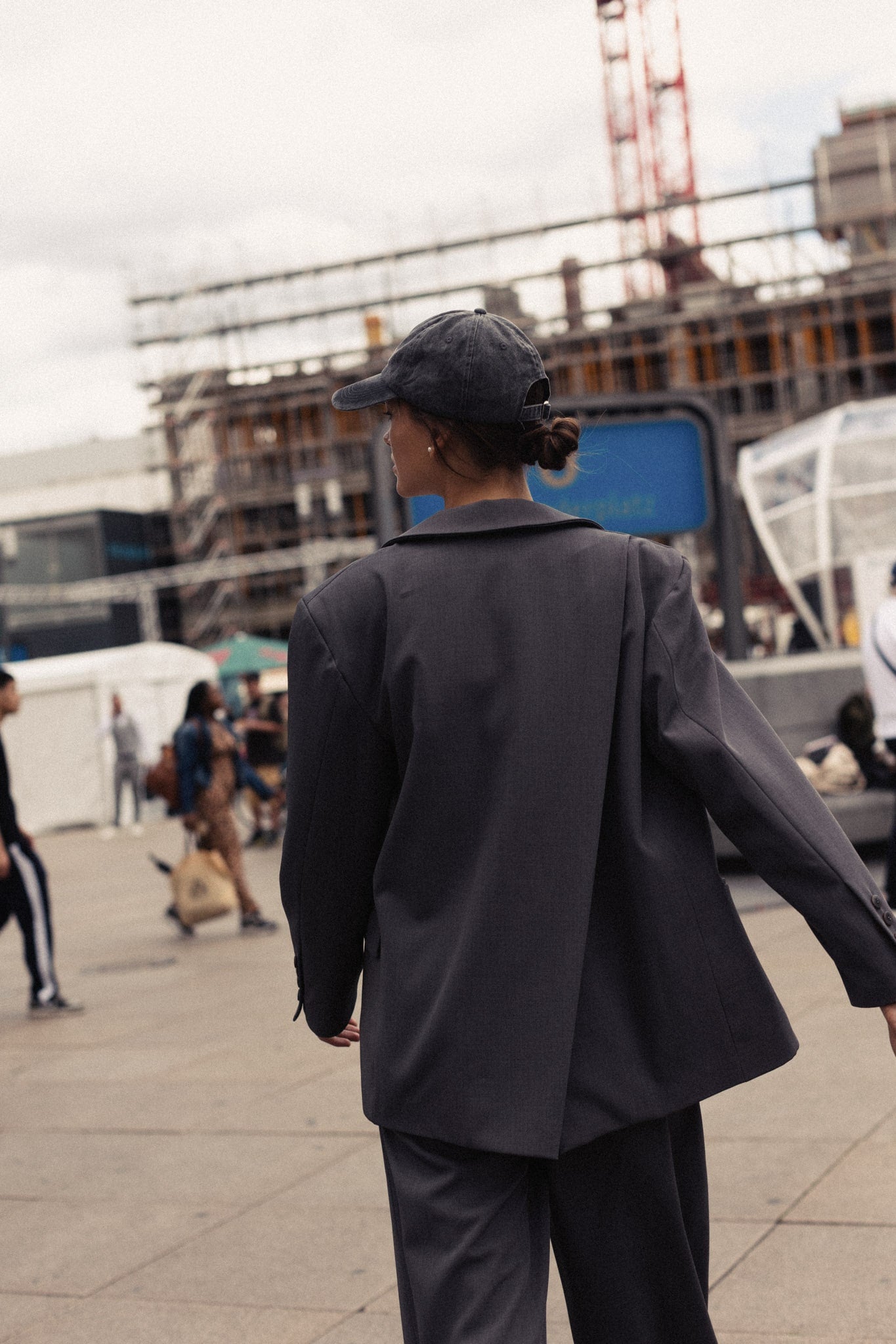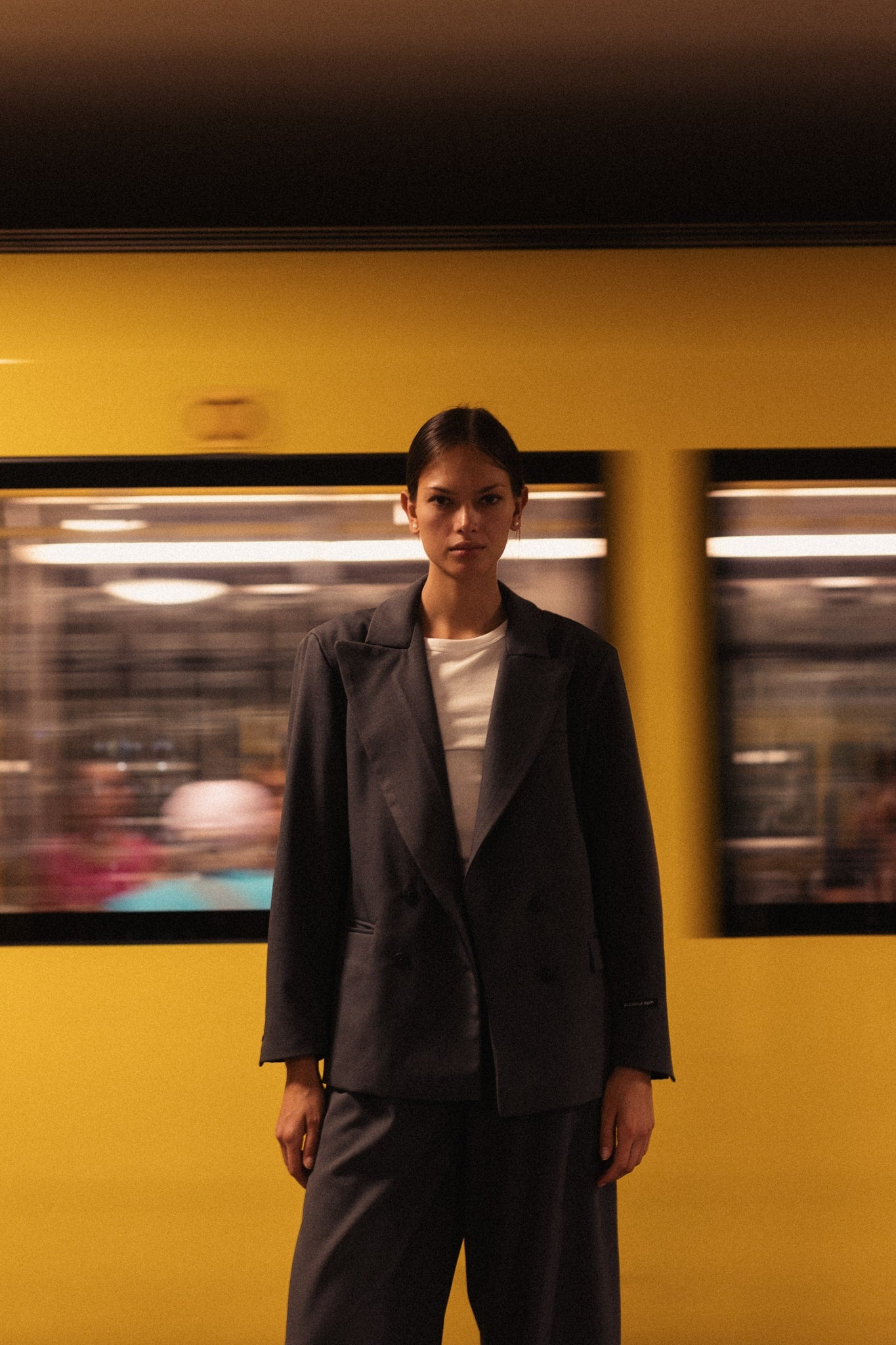 Vlajkovými modelmi tejto kolekcie je trio nohavicových kostýmov, ktoré sa od seba odlišujú strihom saka, ale aj nohavíc. Tažko štýlový a nadčasový oversized ležérny strih. Použili sme tri základné farby, ktoré v šatníku každej ženy nesmú chýbať. Jednou z nich je tmavá šeď. Tento model dostal názov SOREN. Oversized sako má výrazný šikmý prestrih na zadnom diele od ramena až smerom nadol, je podšitý viskózovou podšívkou. Každý model má na rukáve tkanú etiketu s logom Miss Kolorova v efektnom obrátenom detaile. Ako toto sako stylovať mimo setu? Jednoznačne by som si k nemu obliekla tmavú jeansovinu a hnedé čižmy!